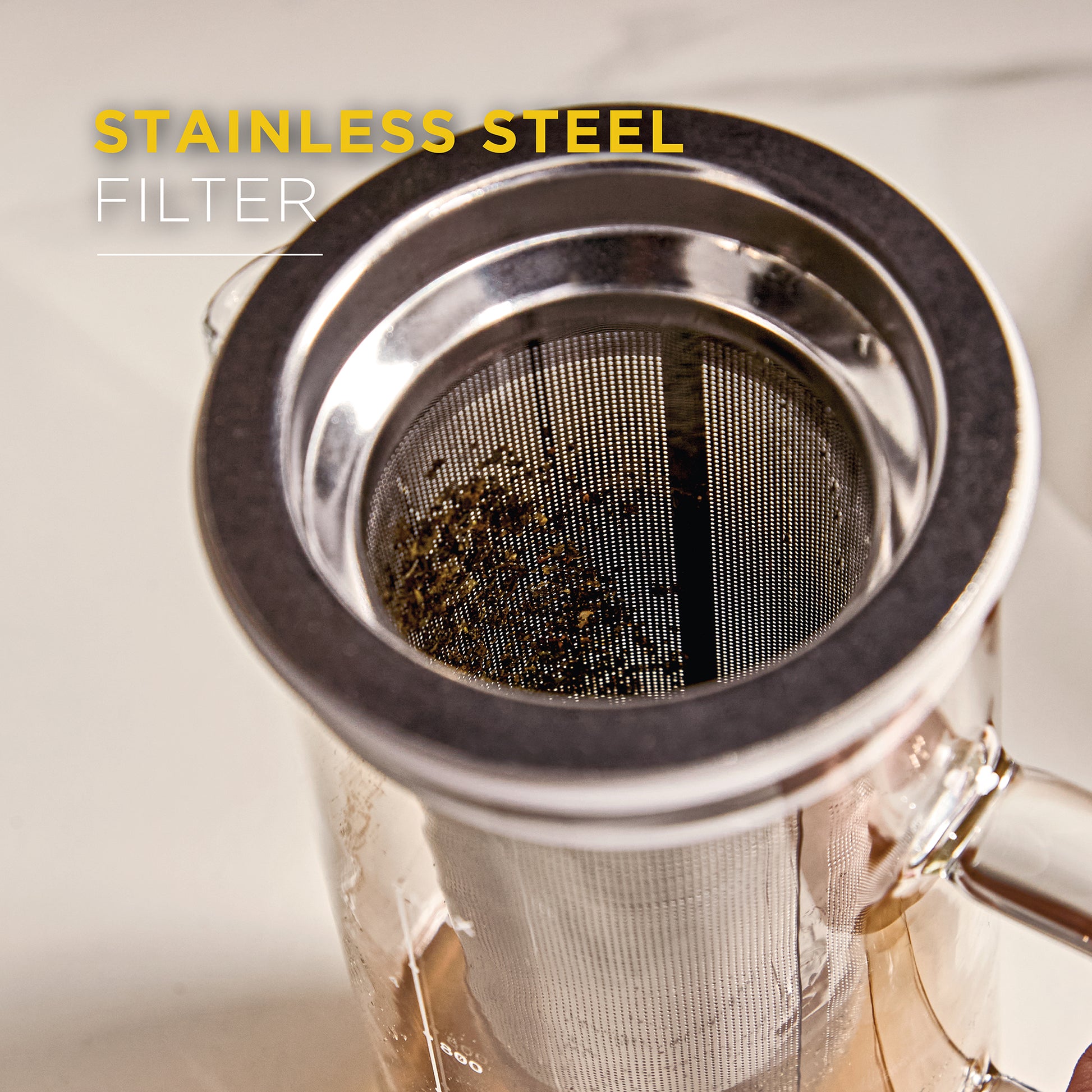 The fine-mesh stainless steel filter separates coffee grounds or tea leaves with ease, keeping sediment out while allowing natural oils and full flavour to infuse. Fully reusable, it eliminates the need for paper filters - reducing waste while delivering a richer taste.
