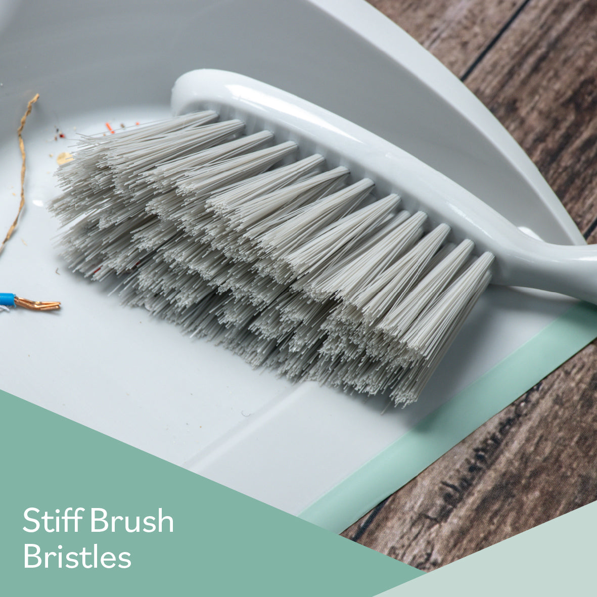 This dustpan and brush set is designed with an ergonomic handle, featuring a contoured shape and a non-slip TPR coating for a secure, comfortable grip. This ensures ease of use during cleaning tasks, reducing hand fatigue and providing a firm hold even during extended use.